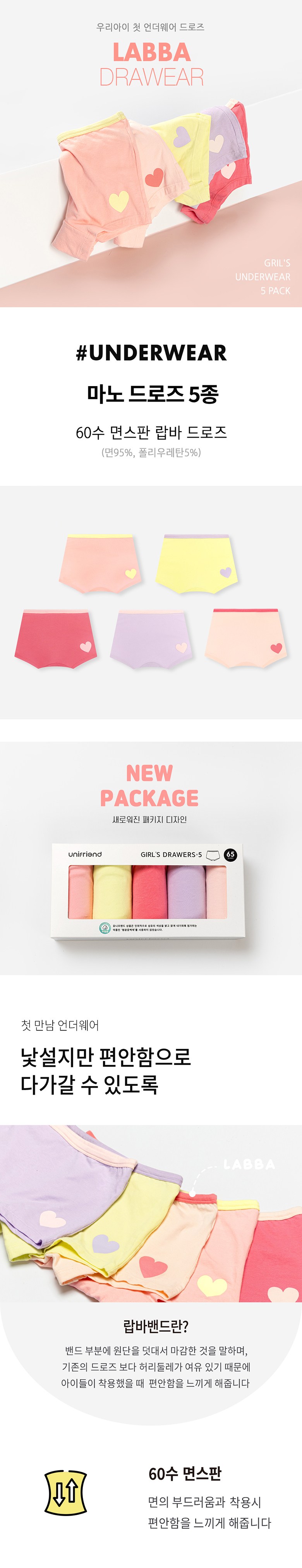 | 품명 및 모델명 | 여아용 마노 드로즈 사각팬티 5종 세트 | KC 인증정보 | 유/KC마크 |