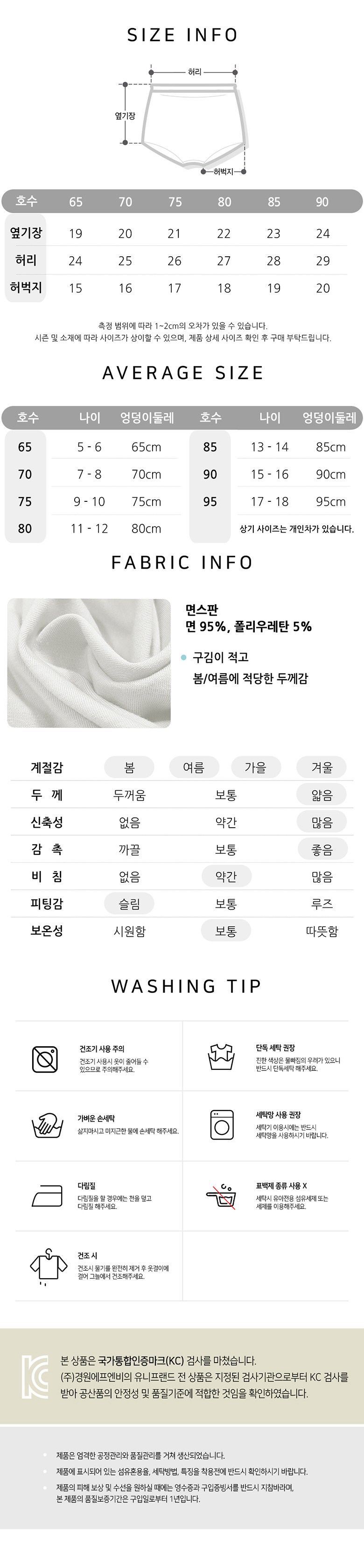 | 색상 | 혼합색상 | 재질 | 면 95%, 폴리우레탄 5% |