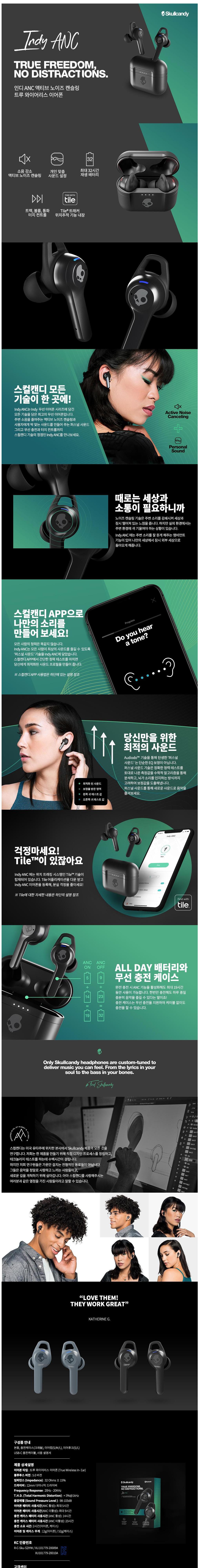 | 품명 및 모델명 | 스컬캔디 인디 ANC 노이즈 캔슬링 위치추적 완전 무선 블루투스 TWS 이어폰 / S2IYW | KC 인증정보 | 본품 : R-C-Sku-S2IYW / 이어폰 전지 : XU101779-20010A / 크래들 전지 : XU101779-20009A |