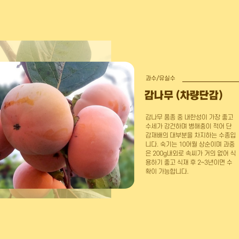 | 품명 및 모델명 | 차량단감나무 묘목 1년생 특묘 | 인증/허가 사항 | 해당사항없음 |