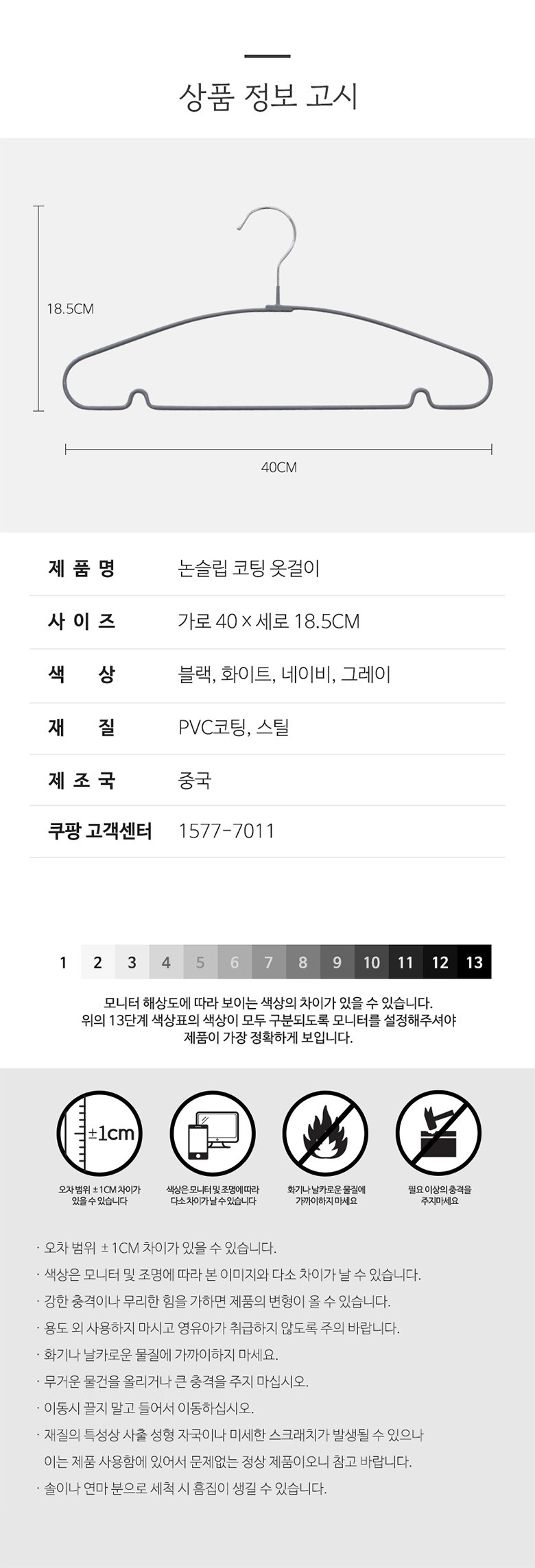 | 품명 및 모델명 | 논슬립 코팅옷걸이 그레이 | 인증/허가 사항 | 해당없음 |