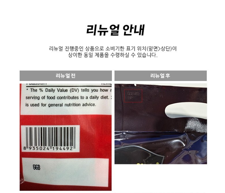 ※ 리뉴얼 진행중인 상품으로 "소비기한 또는 유통기한" 이 표시된 제품을 수령하실 수 있습니다.