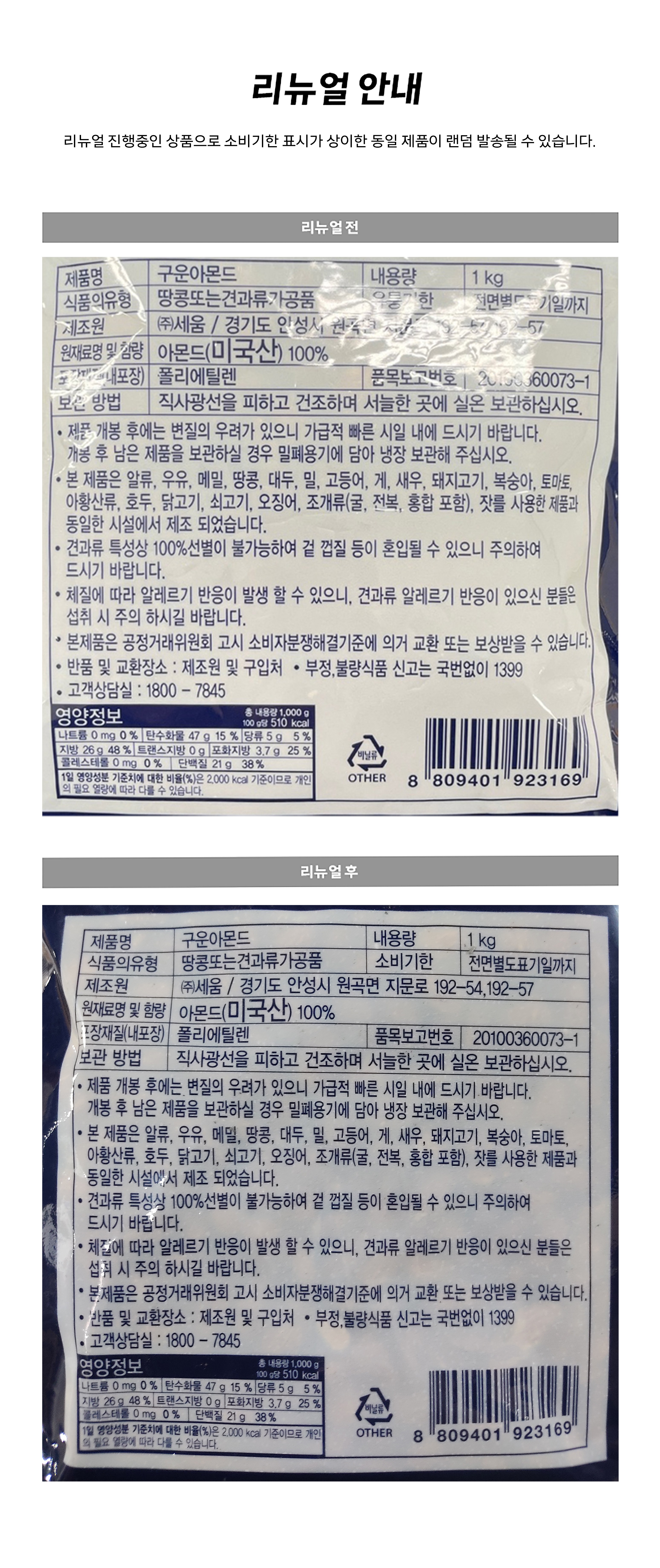 ※ 리뉴얼 진행중인 상품으로 패키지디자인이 상이한 동일상품을 수령하실 수 있습니다.