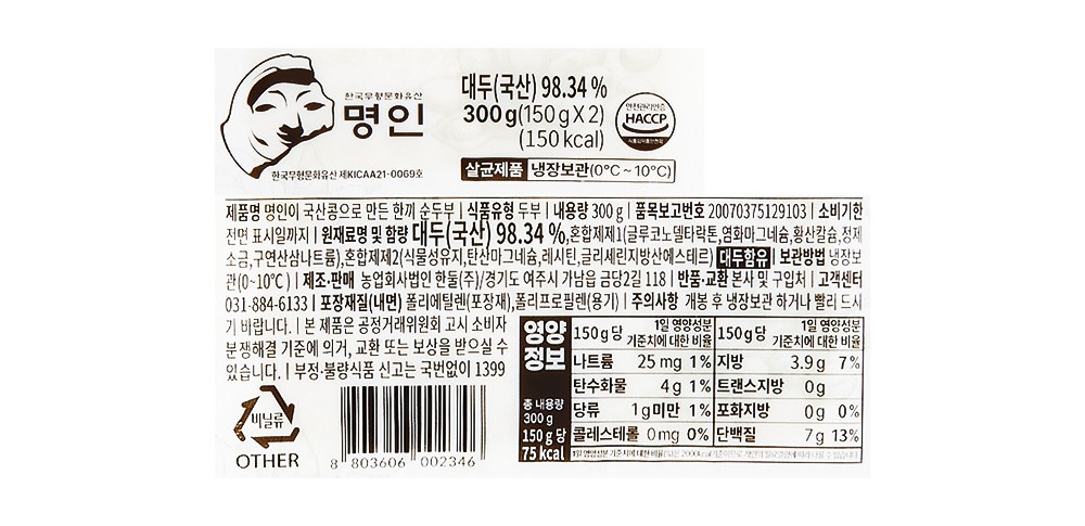 | 제품명 | 명인이 국산콩으로 만든 한끼 순두부 | 식품의 유형 | 컨텐츠참조 |