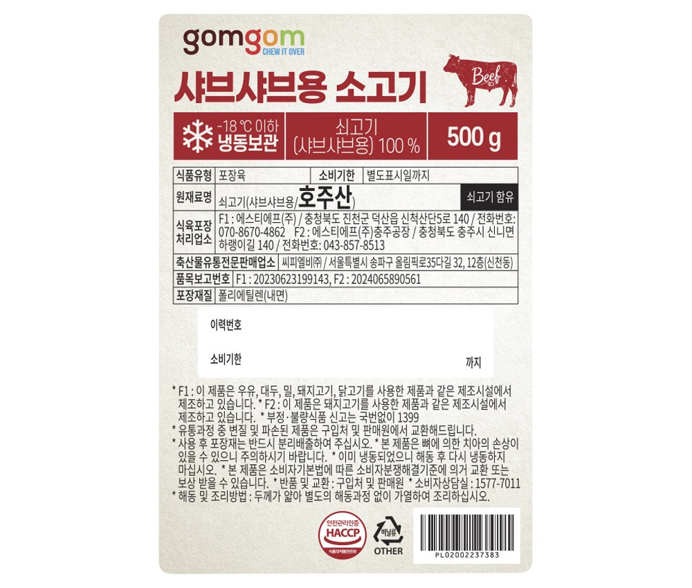 | 품목 또는 명칭 | 샤브샤브용 소고기 | 포장단위별 내용물의 용량(중량),수량,크기 | 컨텐츠 참조 |
