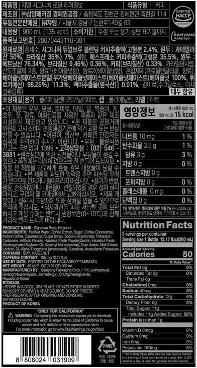 | 포장단위별 내용물의 용량(중량), 수량 | 900ml x 12개 | 원재료명 및 함량 | 컨텐츠 참조 |
