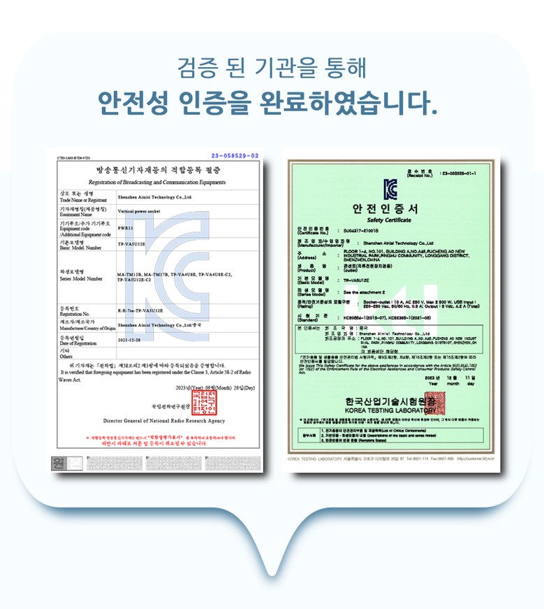| 품명 및 모델명 | Vertical Power Socket / MA-TM12B | KC 인증정보 | SU04317-21001B / 전자파 인증정보: R-R-7sa-TP-VA5U12E |