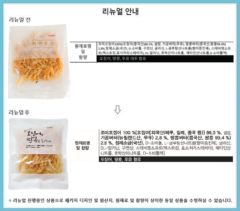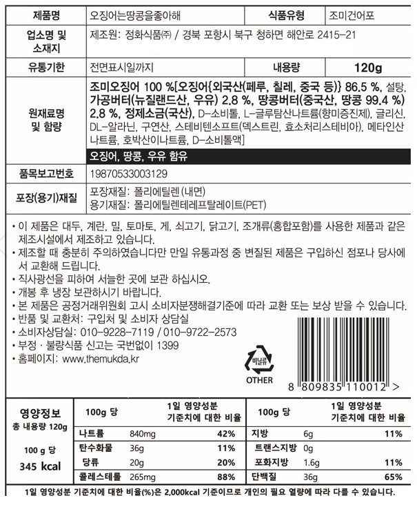 | 제품명 | 오징어는 땅콩을 좋아해 | 식품의 유형 | 조미건어포 |