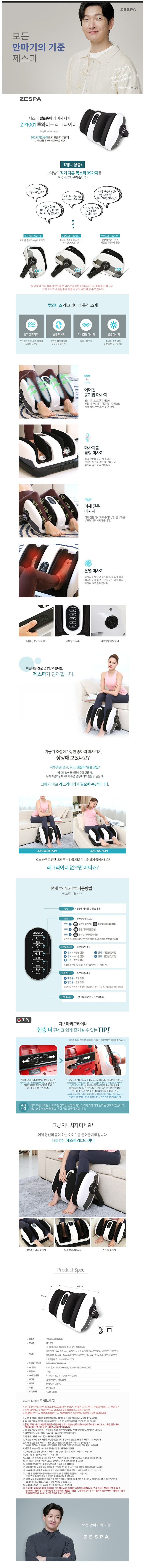 | 품명 및 모델명 | 제스파 투와이스 레그라이너 발마사지기 안마기 / ZP1001 | KC 인증정보 | 본품 : MSIP-REI-ZSP-ZP999 / 어댑터 : HU10595-17009C, MSIP-REM-YD1-IVP2400-2500E5 |