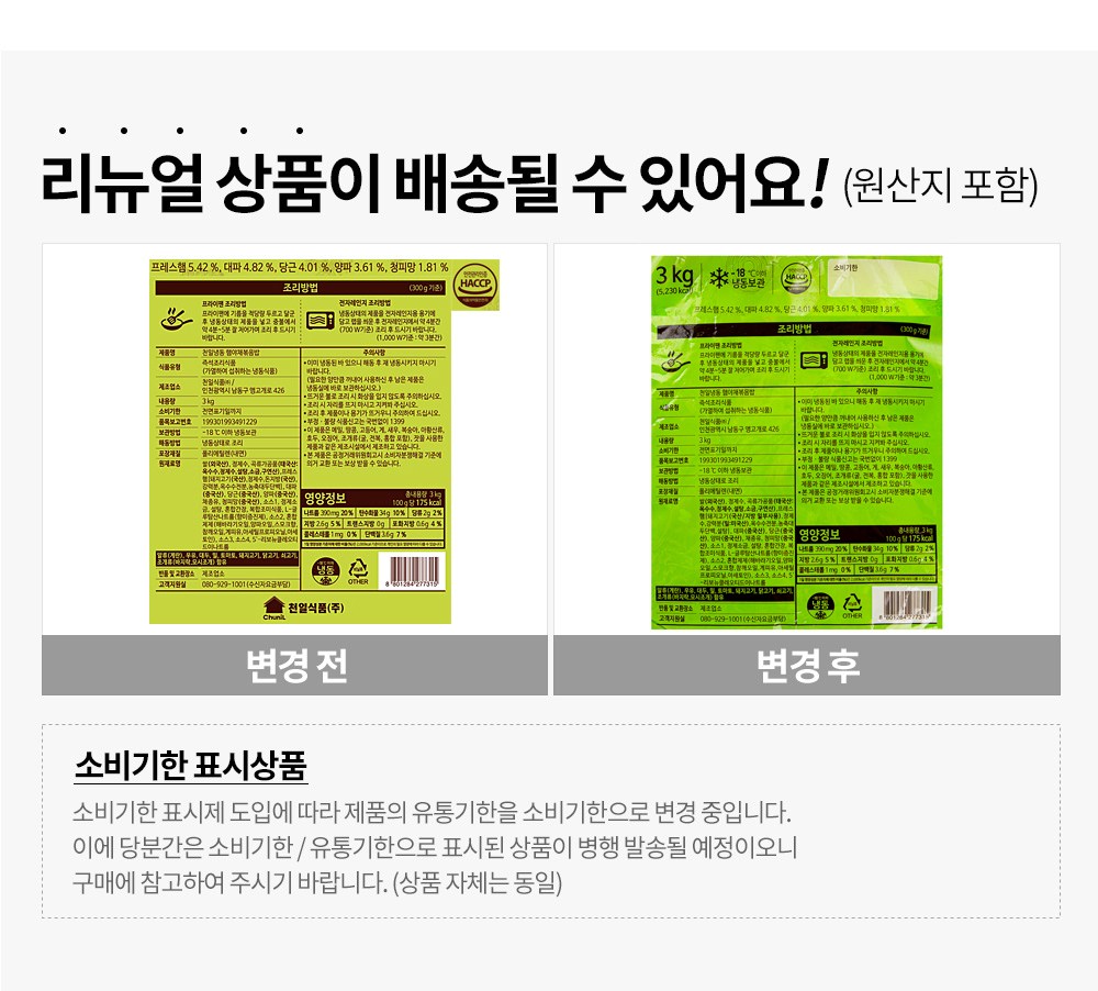 | 포장단위별 내용물의 용량(중량), 수량 | 3kg x 3개,1개 | 원재료명 및 함량 | 컨텐츠참조 |