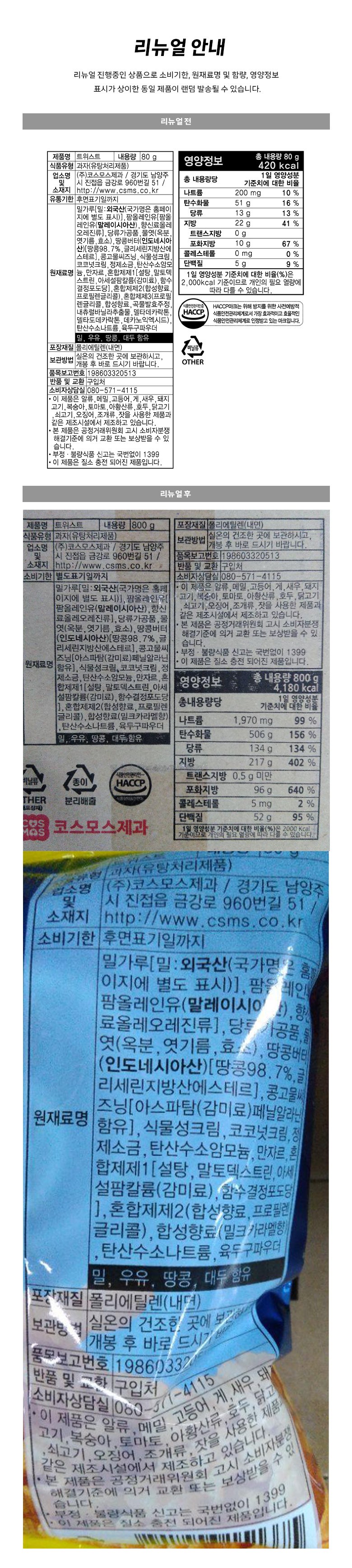 | 제품명 | 트위스트 | 식품의 유형 | 컨텐츠 참조 |