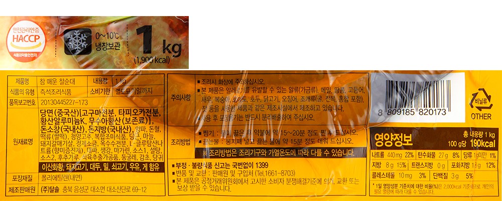 | 포장단위별 내용물의 용량(중량), 수량 | 1kg,1개 | 원재료명 및 함량 | 컨텐츠참조 |