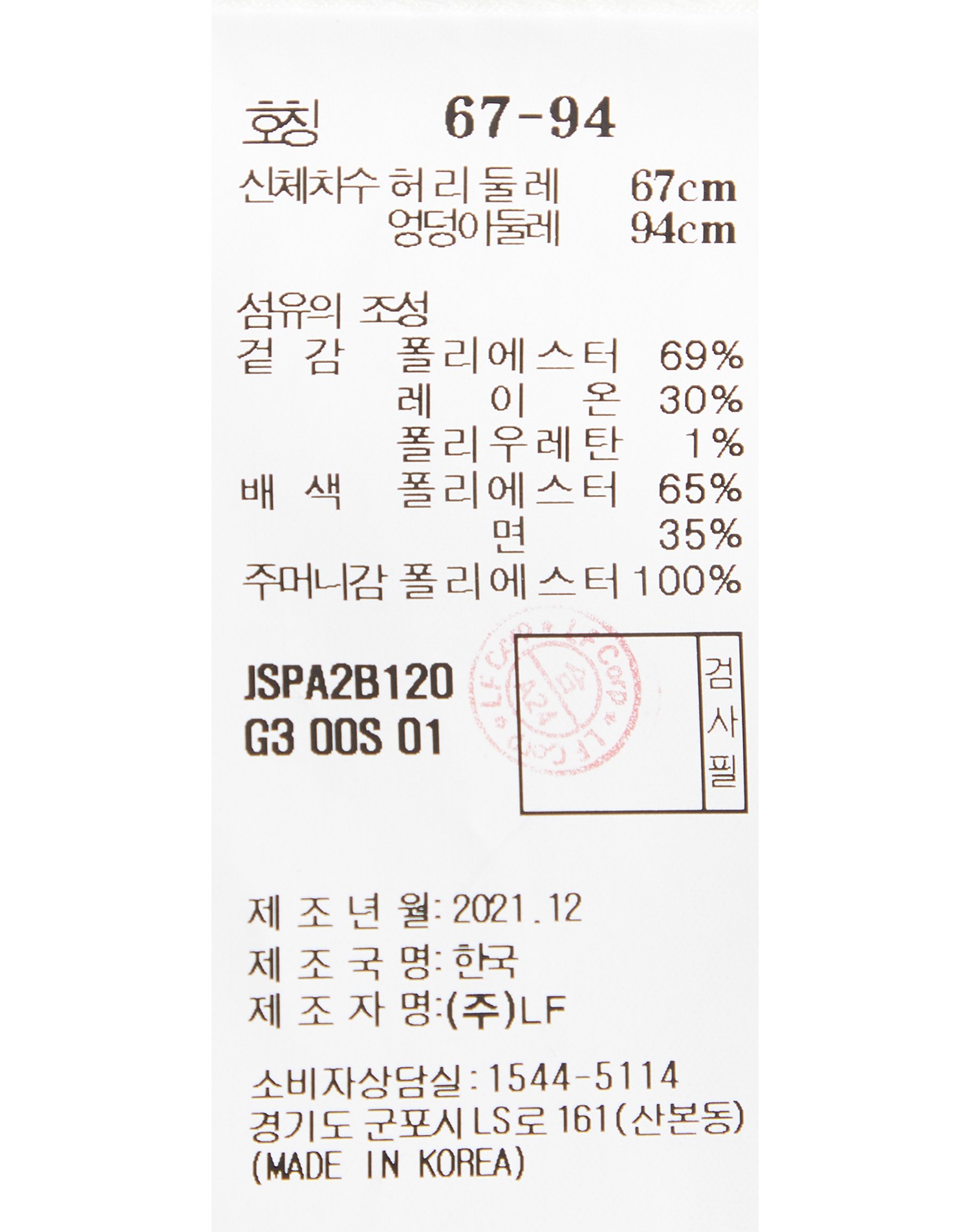| 치수 | 컨텐츠 참조 | 제조자(수입자) | (주)LF |