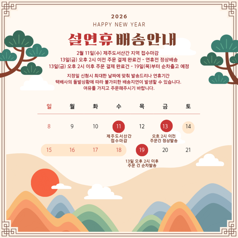 - ㆍ모니터 해상도의 차이로 인해 색상이나 이미지가 실제와 달라, 고객이 단순 변심으로 교환/반품을 무료로 요청하는 경우