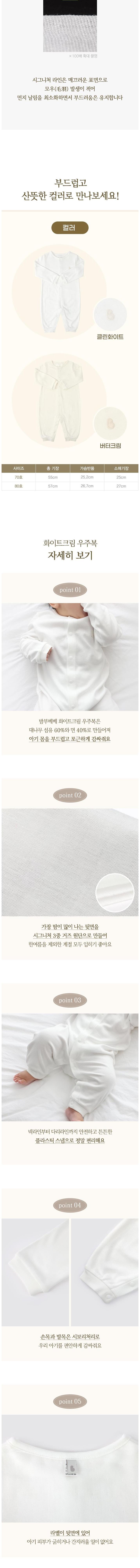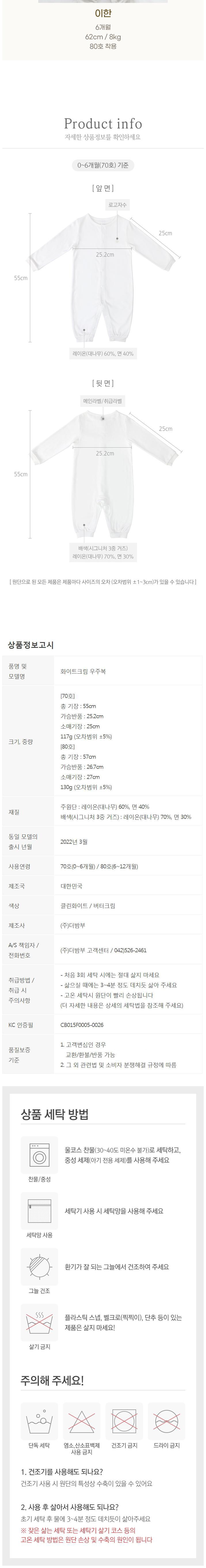 | 품명 및 모델명 | 밤부베베 화이트크림 우주복 | KC 인증정보 | CB015F0005-0026 |