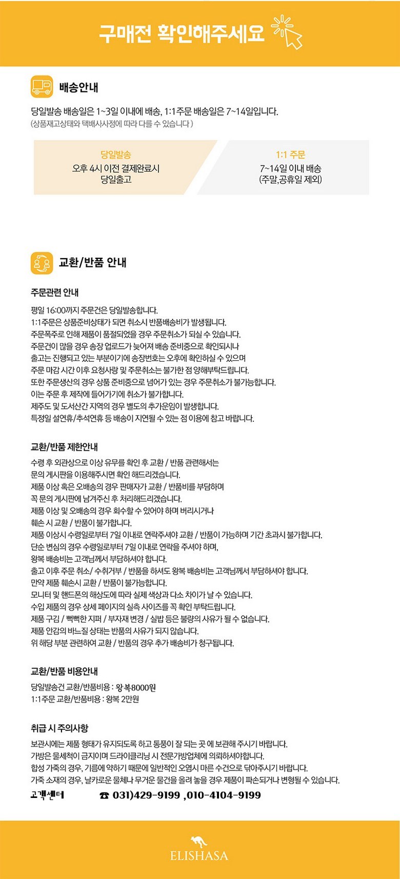 - ㆍ교환/반품에 관한 일반적인 사항은 판매자가 제시사항보다 관계법령이 우선합니다.