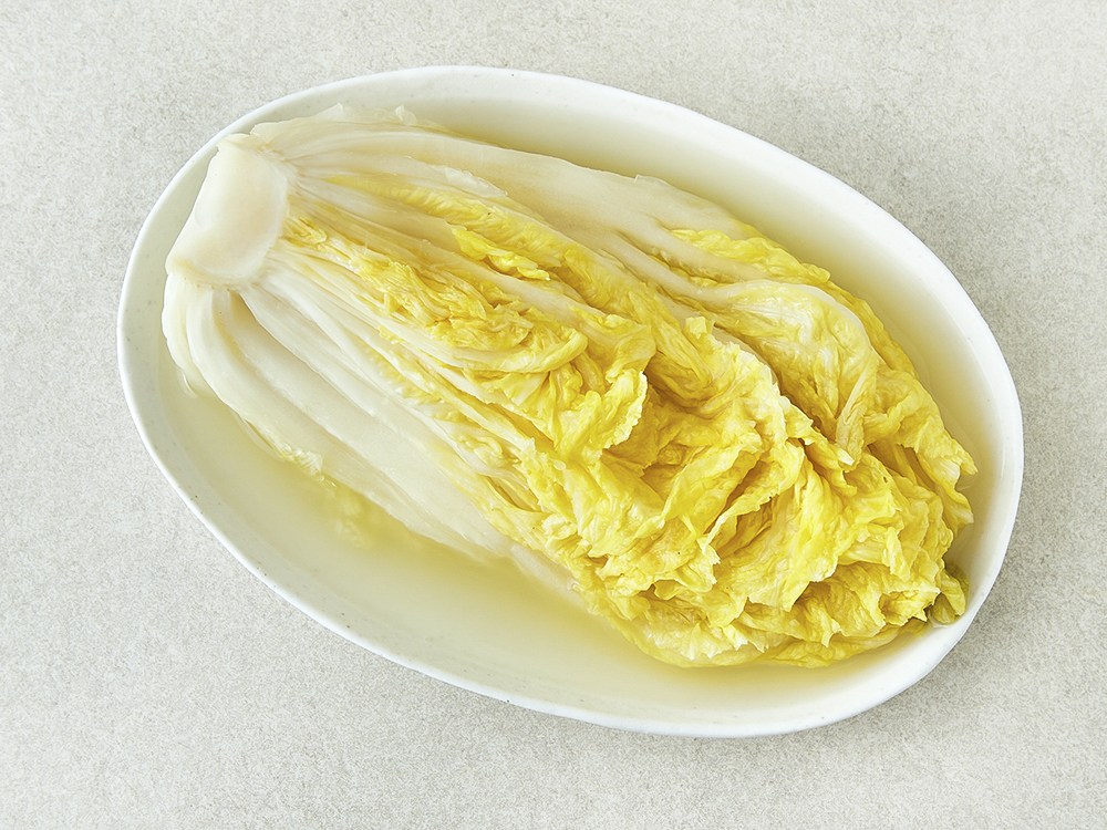 1. 백묵은지를 낱장으로 찢어 손질합니다.