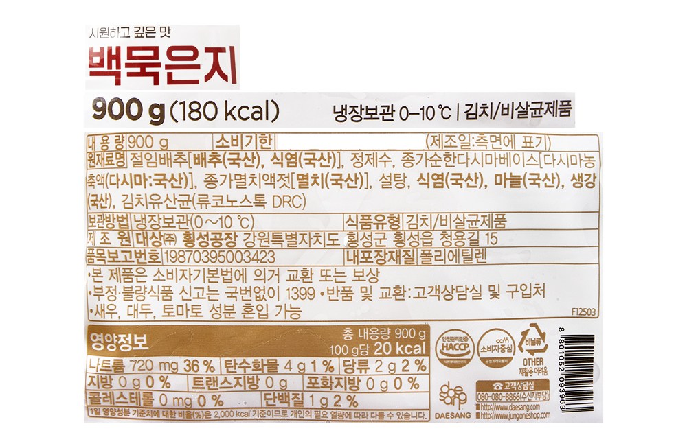 | 제품명 | 백묵은지 | 식품의 유형 | 컨텐츠 참조 |