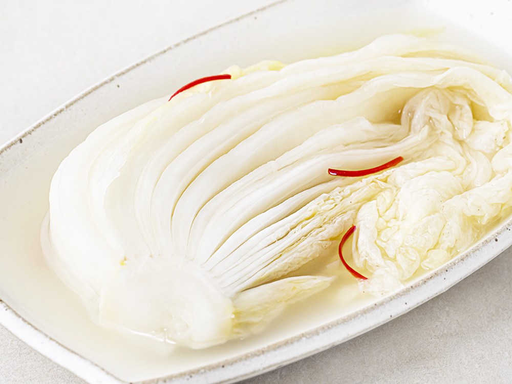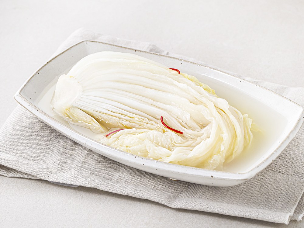 아삭아삭한 식감이 매력적인 백묵은지예요. 고춧가루를 넣지 않아 본연의 시원한 맛을 만끽하기 좋지요. 씻을 필요 없이 바로 즐길 수 있어 간편하답니다. 그대로 밥반찬으로 먹어도 맛있고, 회나 수육에 곁들여도 훌륭해요.