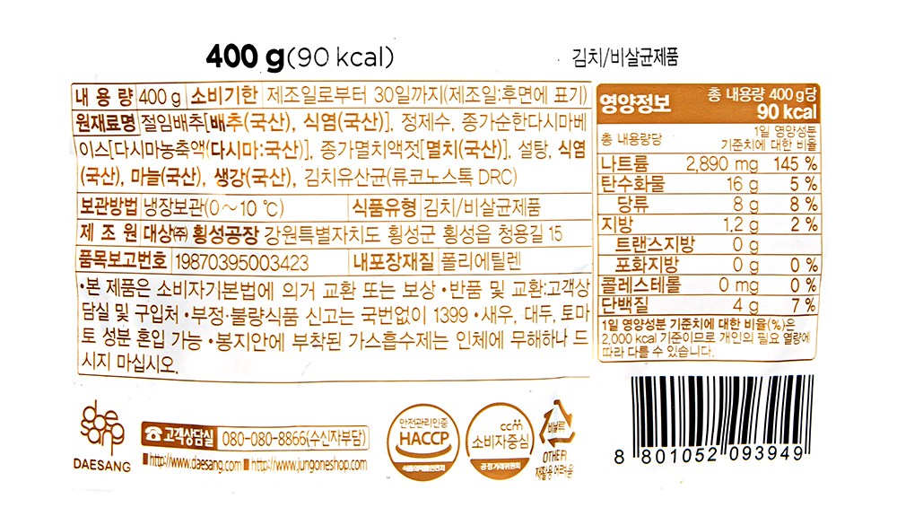 | 제품명 | 백묵은지 | 식품의 유형 | 컨텐츠 참조 |