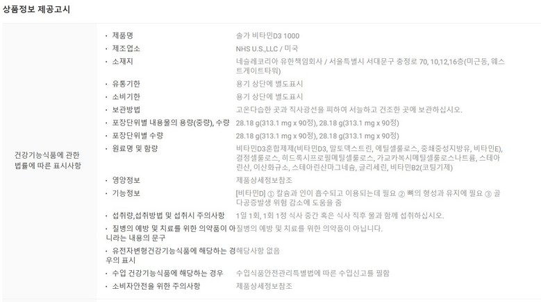 - 건강식품 성분: 단일건강식품
