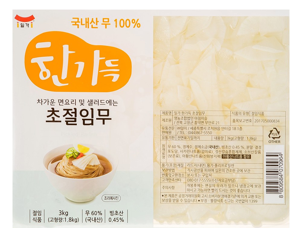 | 제품명 | 일가 한가득 초절임무 | 식품의 유형 | 컨텐츠참조 |