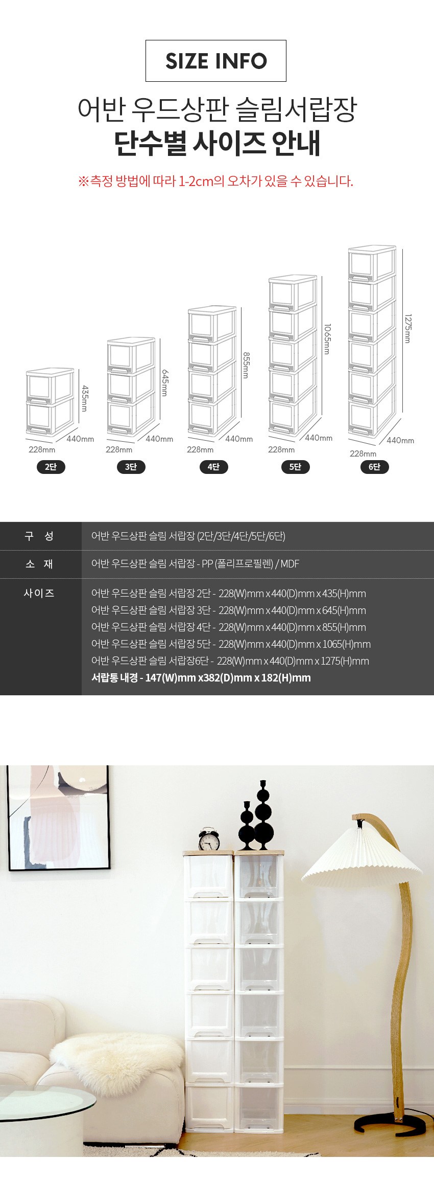 | 품명 및 모델명 | 보노하우스 우드상판 슬림 서랍장 | 인증/허가 사항 | 해당없음 |