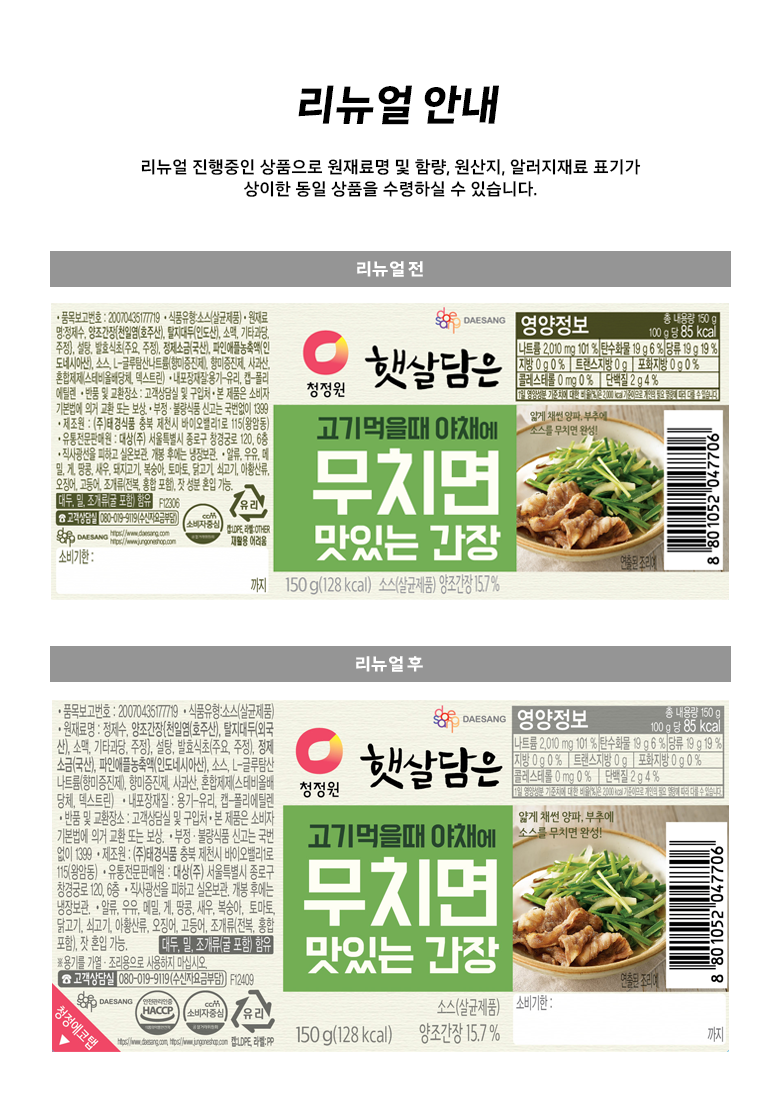 | 포장단위별 내용물의 용량(중량), 수량 | 150g, 1개 | 원재료명 및 함량 | 컨텐츠 참조 |