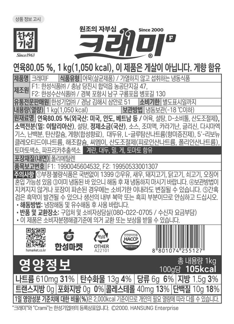 | 배송방법 | 신선/냉장/냉동 | 배송비 | 무료배송 - 도서산간 지역 배송불가 |