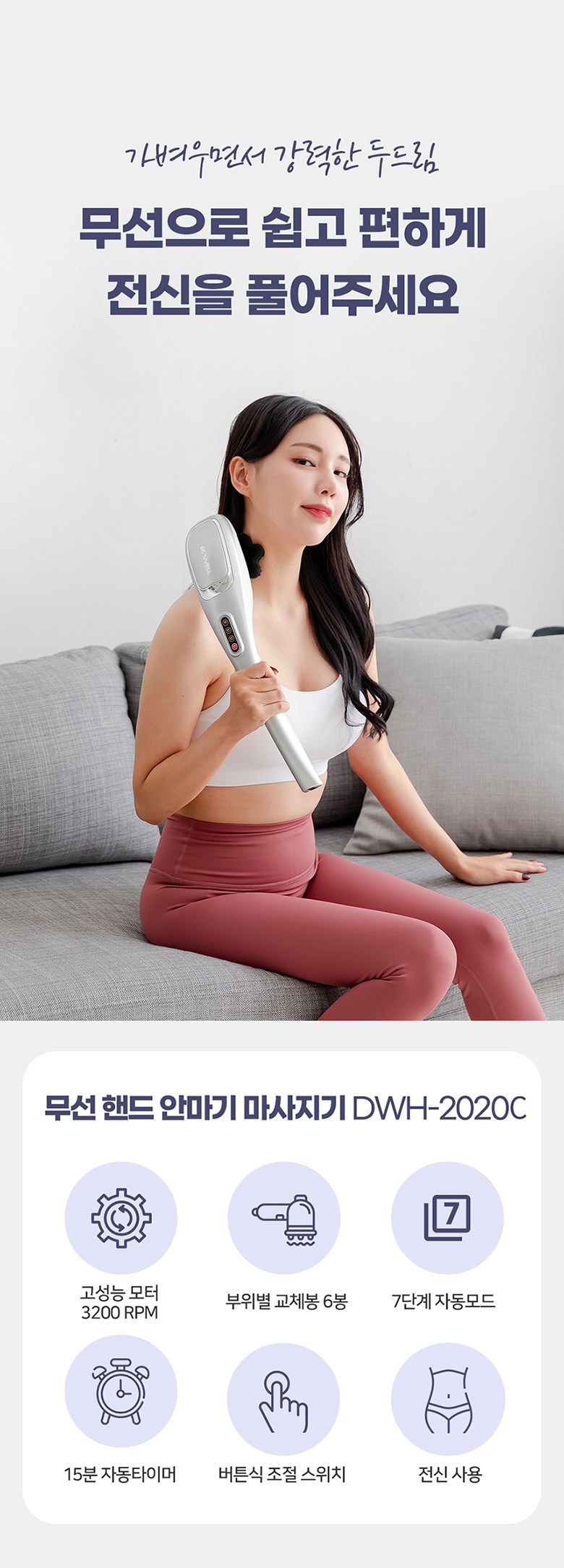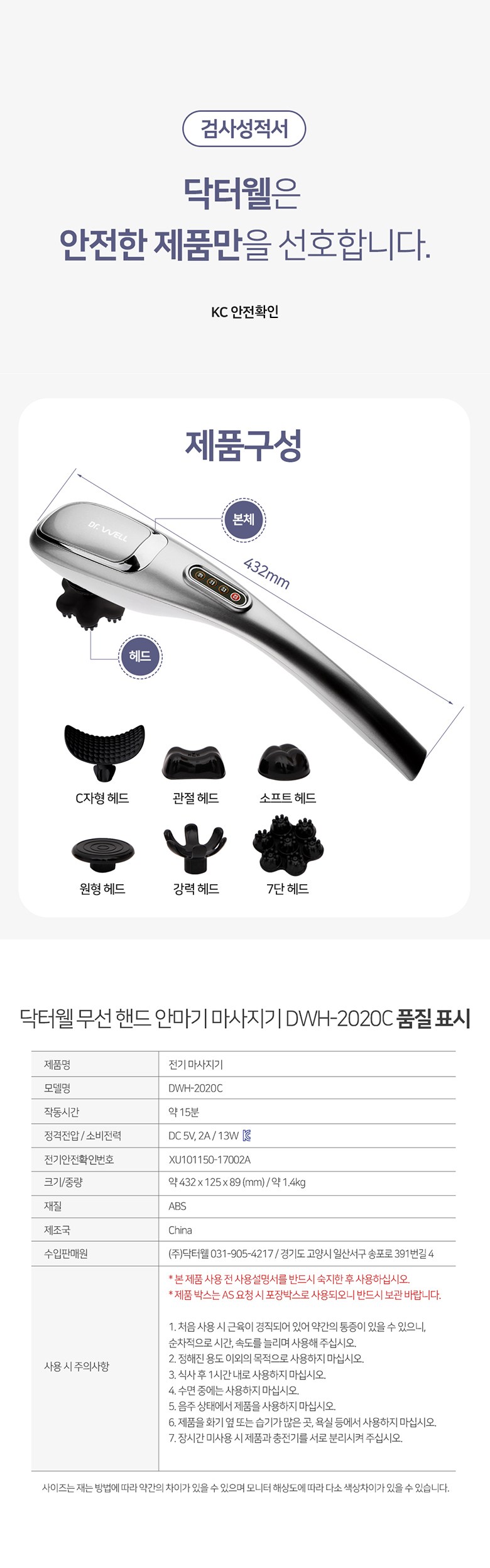 | 품명 및 모델명 | 무선 핸드안마기 / DWH-2020C | KC 인증정보 | 본품 : R-R-DrW-DR-2022C, 배터리: XU101150-17002A |