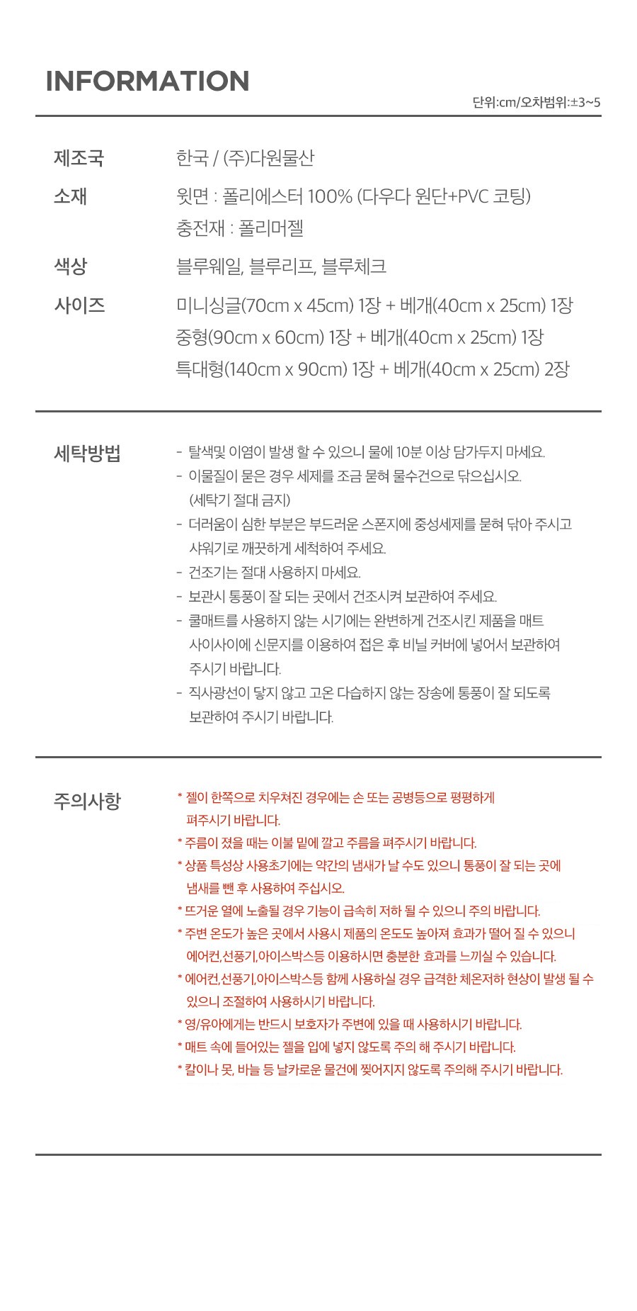 | 제조자(수입자) | (주)다원물산 | 제조국 | 대한민국 |