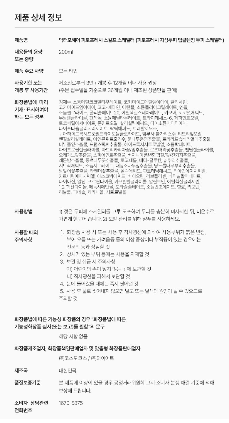 - 구성품: 두피스케일러 200ml + 샴푸 70ml