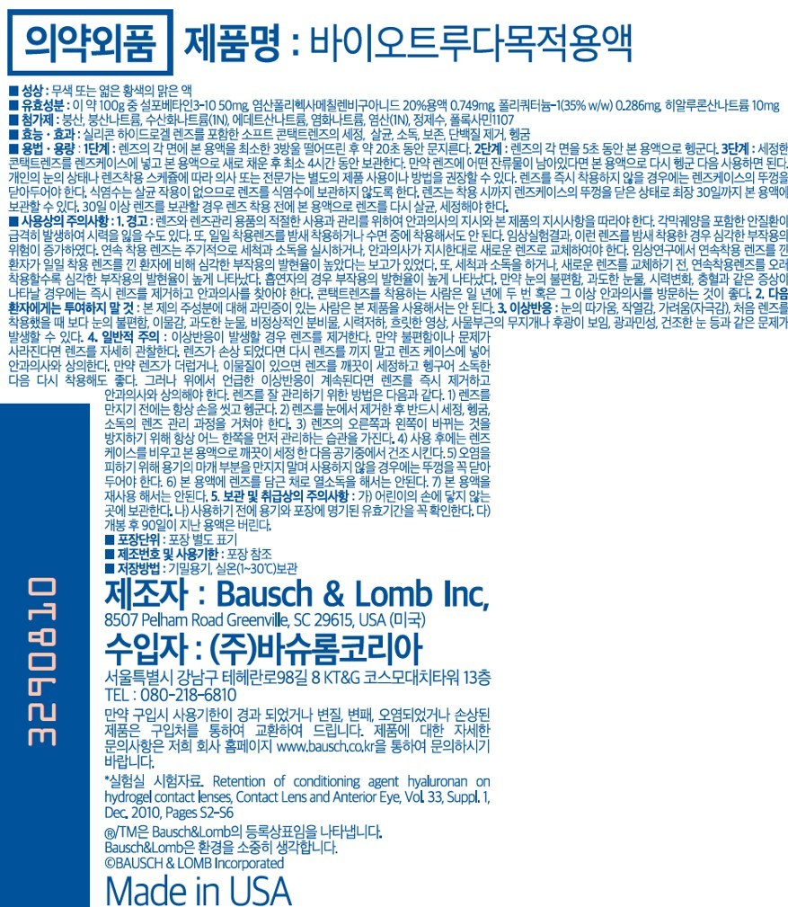 | 품명 및 모델명 | 바이오트루다목적용액 | 인증/허가 사항 | 의약외품 |