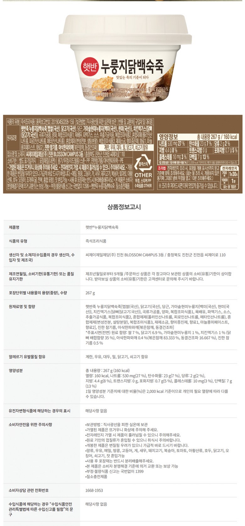 | 제품명 | 상품 상세페이지 참조 | 식품의 유형 | 상품 상세페이지 참조 |