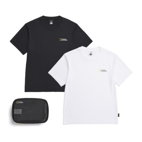 1+1 내셔널지오그래픽 반팔 티셔츠 레이어드티 남성 여성 쿨링 라운드 반팔티 화이트 블랙