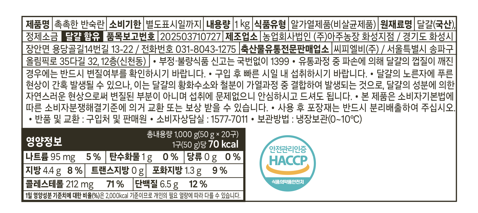 | 제품명 | 촉촉한 반숙란 | 식품의 유형 | 컨텐츠 참조 |