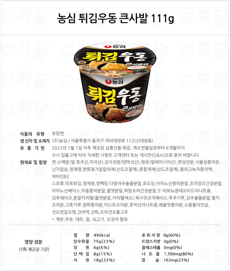 | 제품명 | 상품 상세페이지 참조 | 식품의 유형 | 상품 상세페이지 참조 |