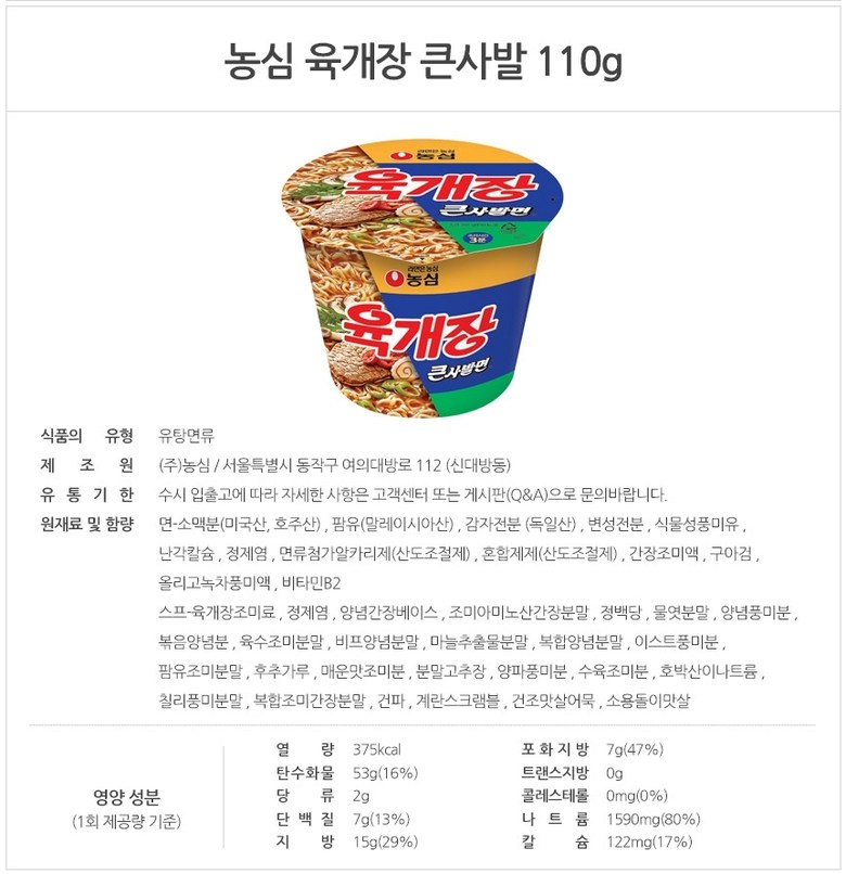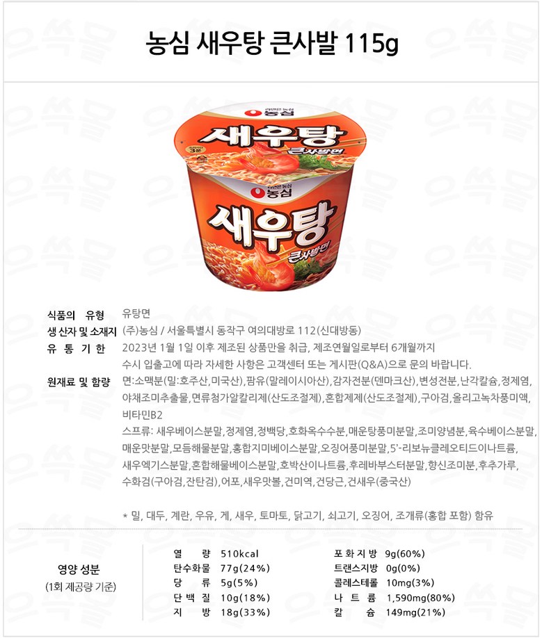 | 생산자 및 소재지 | 상품 상세페이지 참조 | 제조연월일, 소비기한 또는 품질유지기한 | 상품 상세페이지 참조 |
