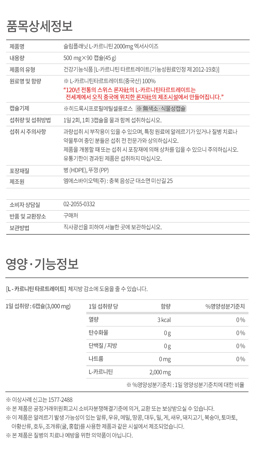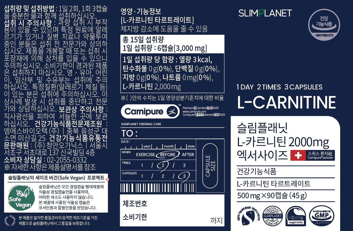 | 제품명 | 슬림플래닛 L-카르니틴 2000mg 엑서사이즈 | 제조업소의 명칭과 소재지 | 컨텐츠참조 |