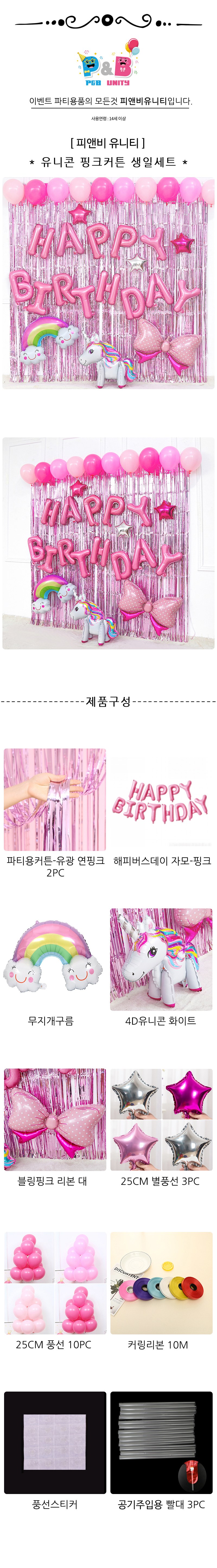 | 품명 및 모델명 | 피앤비유니티 유니콘 핑크 파티커튼 생일 혼합풍선세트 | 인증/허가 사항 | 해당없음 |