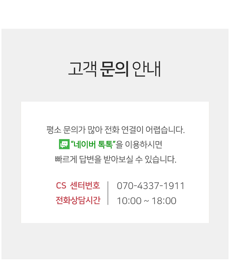 | 소비자상담 관련 전화번호 | 070-4337-1911 | ||