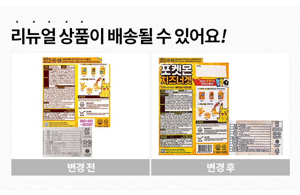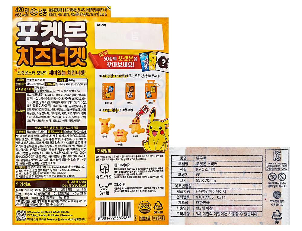 | 제품명 | 포켓몬 치즈너겟 | 식품의 유형 | 컨텐츠참조 |