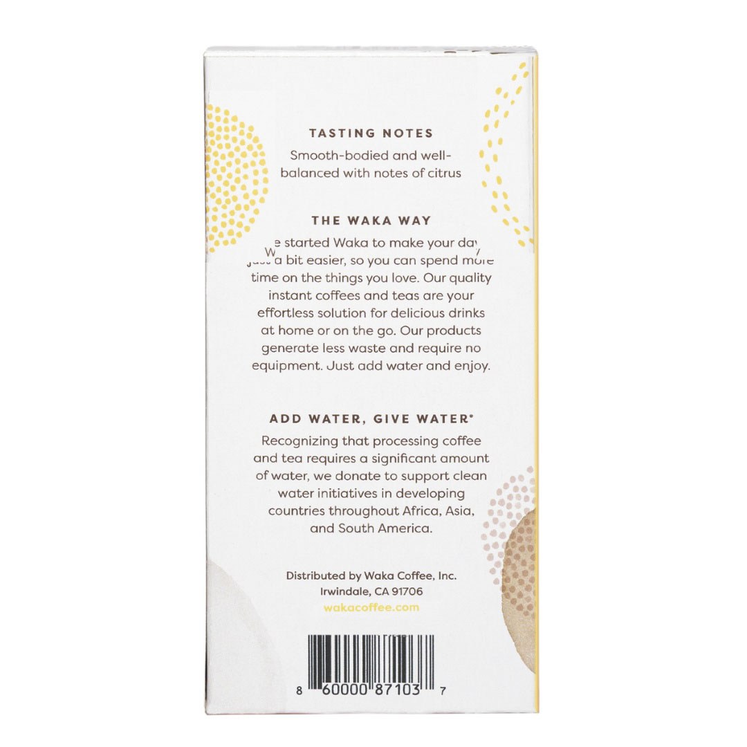 아라비카 원두로 만든 제품입니다. 향과 맛을 보존하기 위해 동결 건조하여 만들었습니다. 미디엄 로스팅하여 깔끔한 마무리감 및 부드러운 바디감, 카카오 및 시나몬의 달콤한 향을 느낄 수 있습니다. 첨가제가 들어있지 않습니다. 박스는 콤팩트한 디자인으로 재활용 가능합니다.