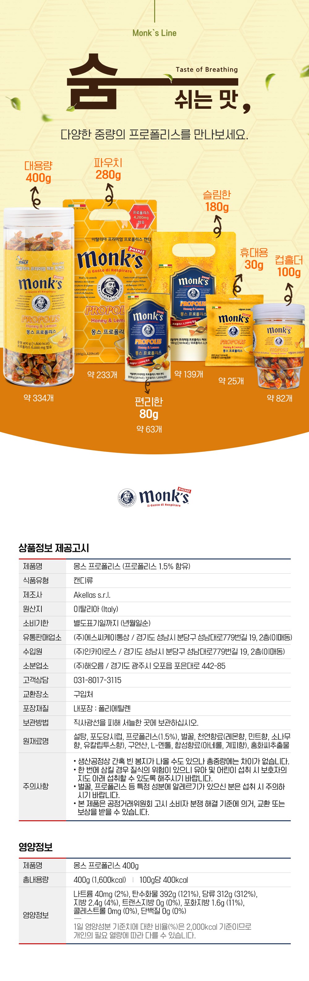 - 캔디류 맛/향: 허니/꿀