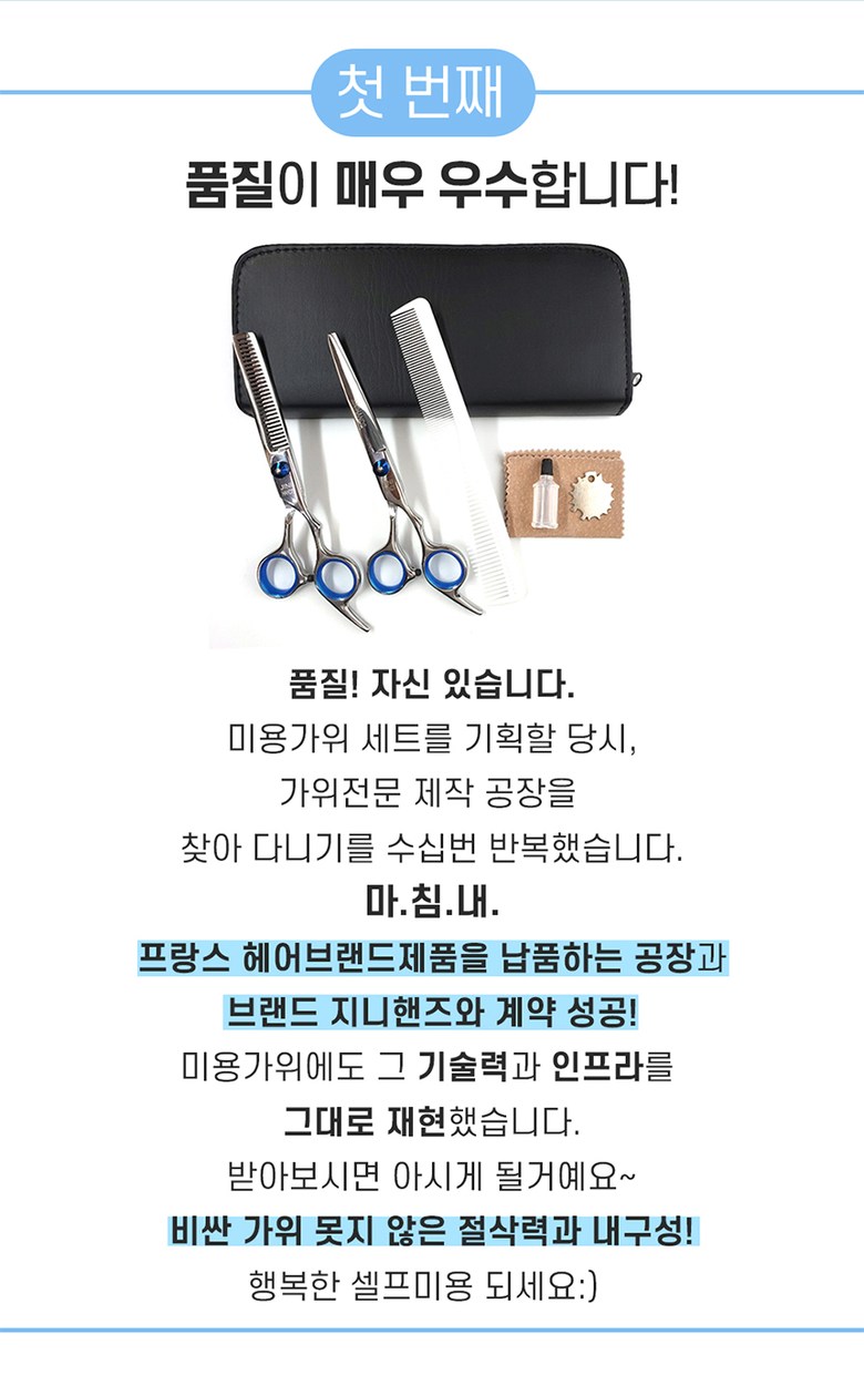 | 품명 및 모델명 | 지니핸즈 가정용 미용가위세트 , 가위2종+미용커트보+스펀지 , 커트세트 | 인증/허가 사항 | 해당없음 |