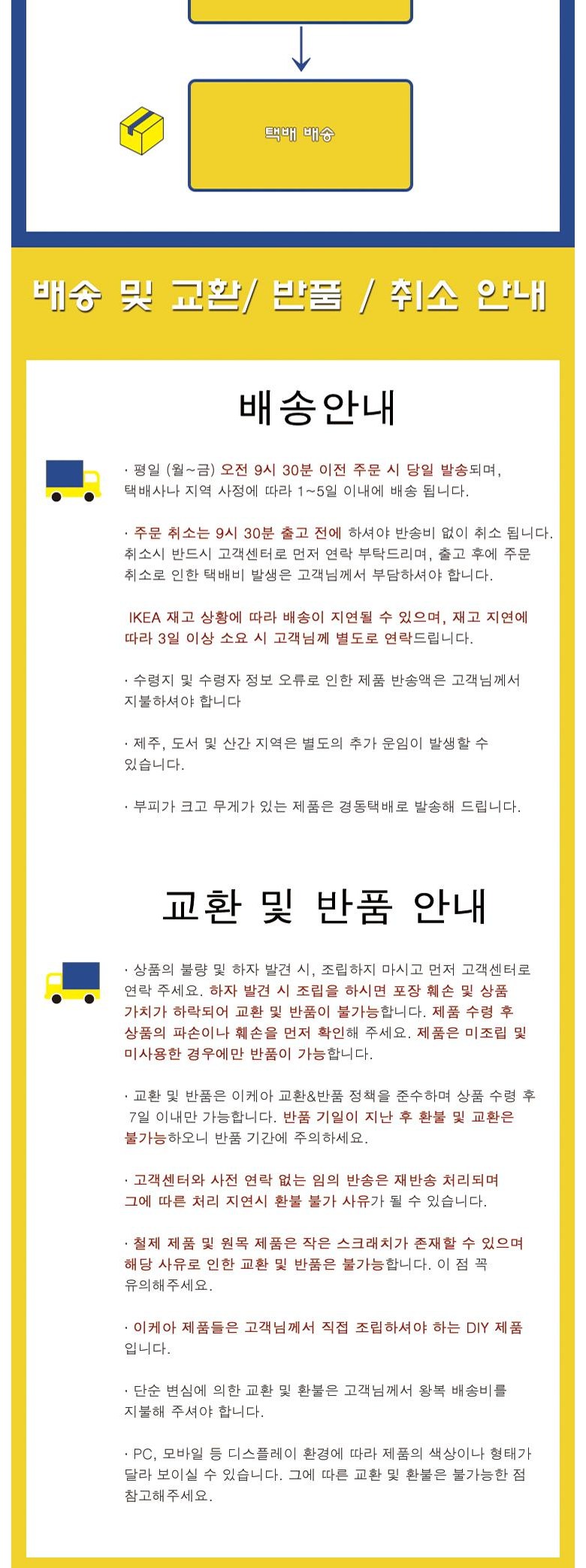 - ㆍ교환/반품에 관한 일반적인 사항은 판매자가 제시사항보다 관계법령이 우선합니다.