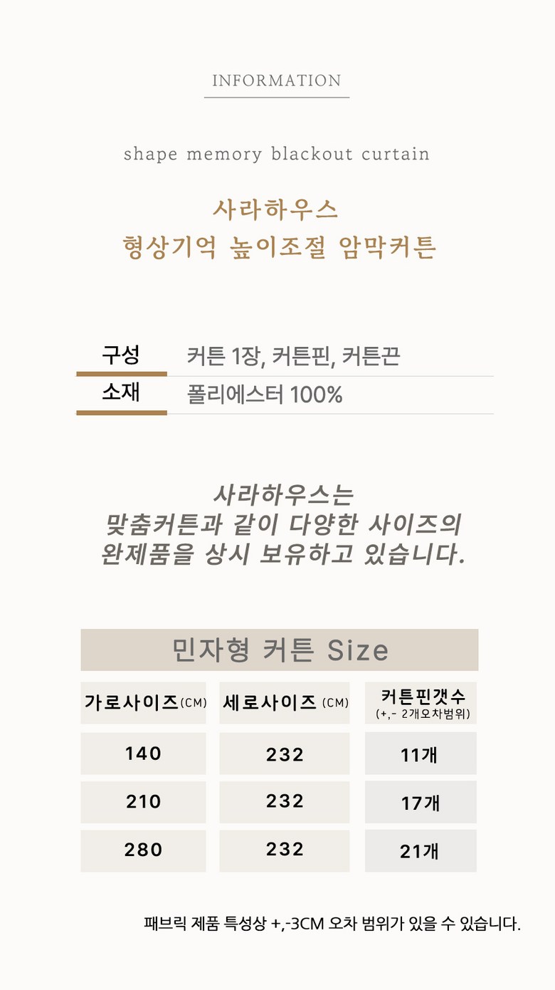 - 커튼종류: 암막