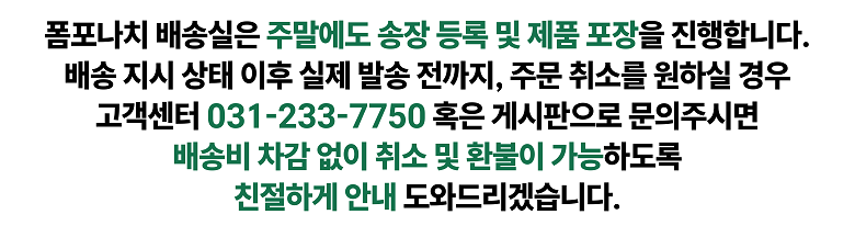 - ㆍ모니터 해상도의 차이로 인해 색상이나 이미지가 실제와 달라, 고객이 단순 변심으로 교환/반품을 무료로 요청하는 경우