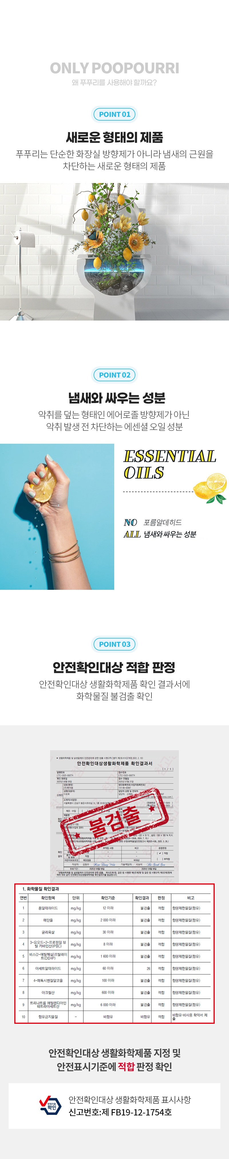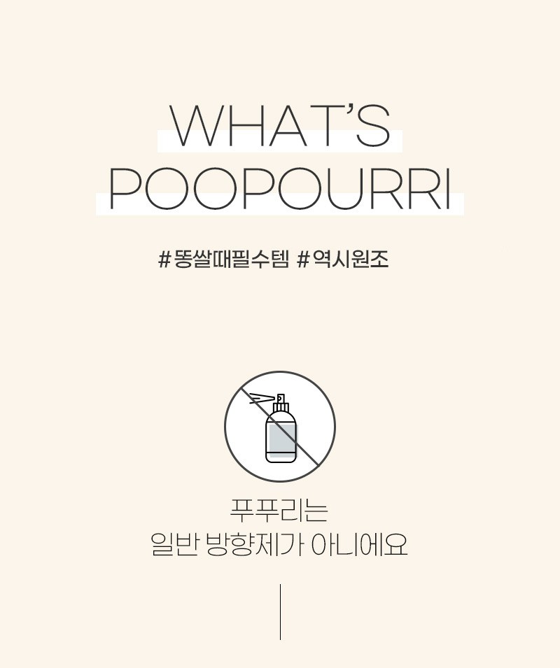| 품목 및 제품명 | 방향제 / 푸푸리 (Poo Pourri) | 용도(표백제의 경우 계열을 함께표시) 및 제형 | 일반용-실내공간용 / 분무기형 |