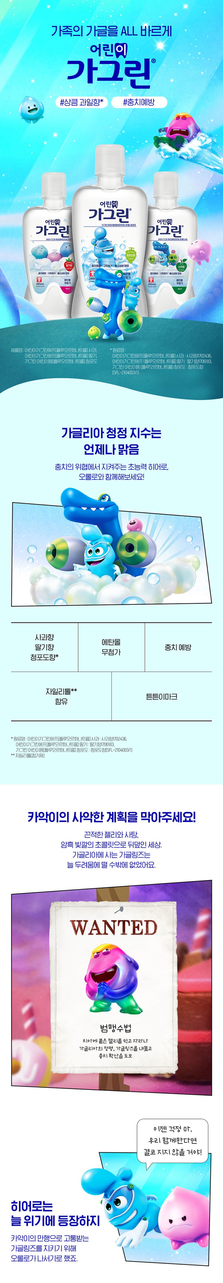 | 품명 및 모델명 | 가그린어린이용(플루오르화나트륨)청포도 | 인증/허가 사항 | 의약외품 |